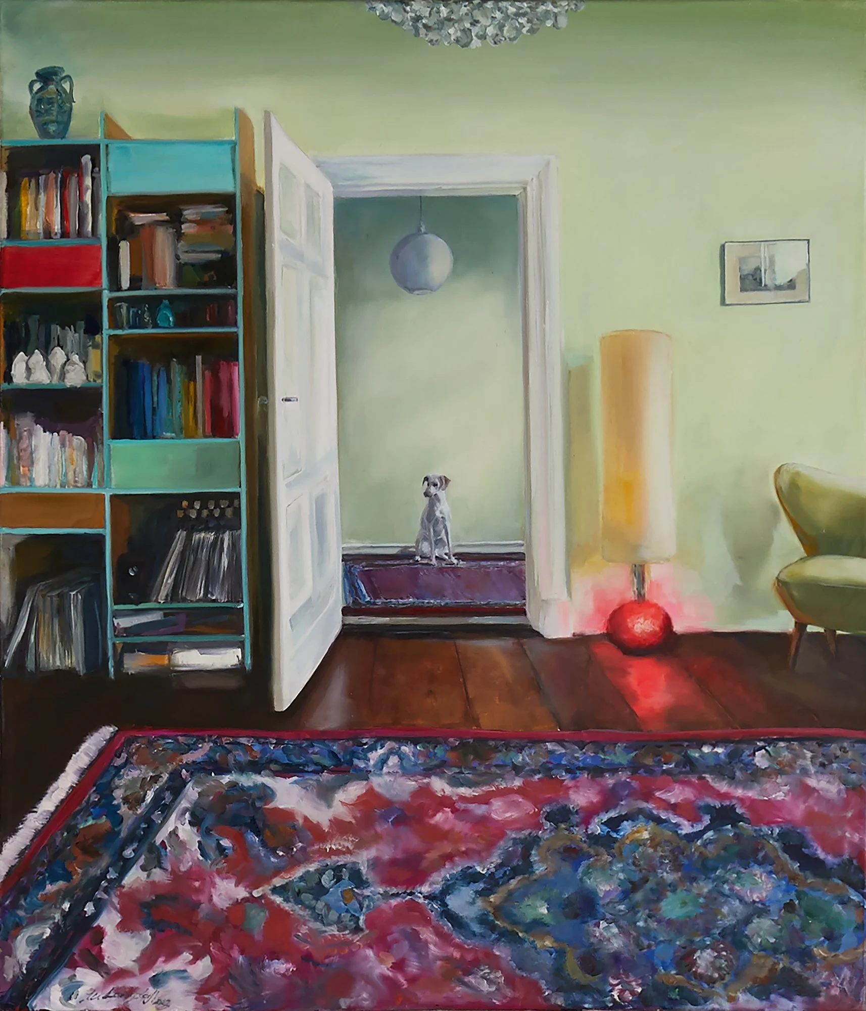 Coco in Interieur, Öl auf Leinwand, 70 x 60 cm, 2022 Nehmen Sie mit mir Kontakt auf Name Vorname Nachname E-Mail * Nachricht Vielen Dank!